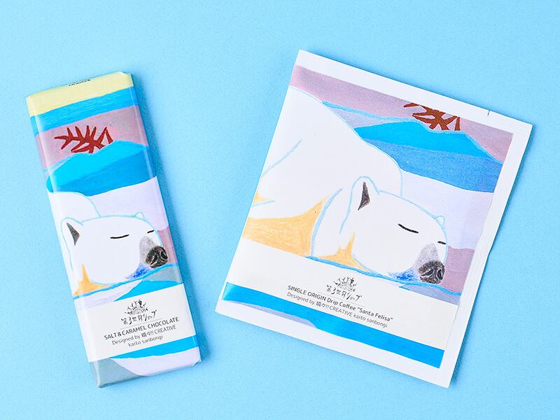 筧 純爾さん、齊藤 瑛那さん、三本木 海人さん、森山 幸美さん、山本 頼子さん、5人のアーティストの作品が、フェアトレードチョコレートとドリップコーヒーのパッケージになりました。