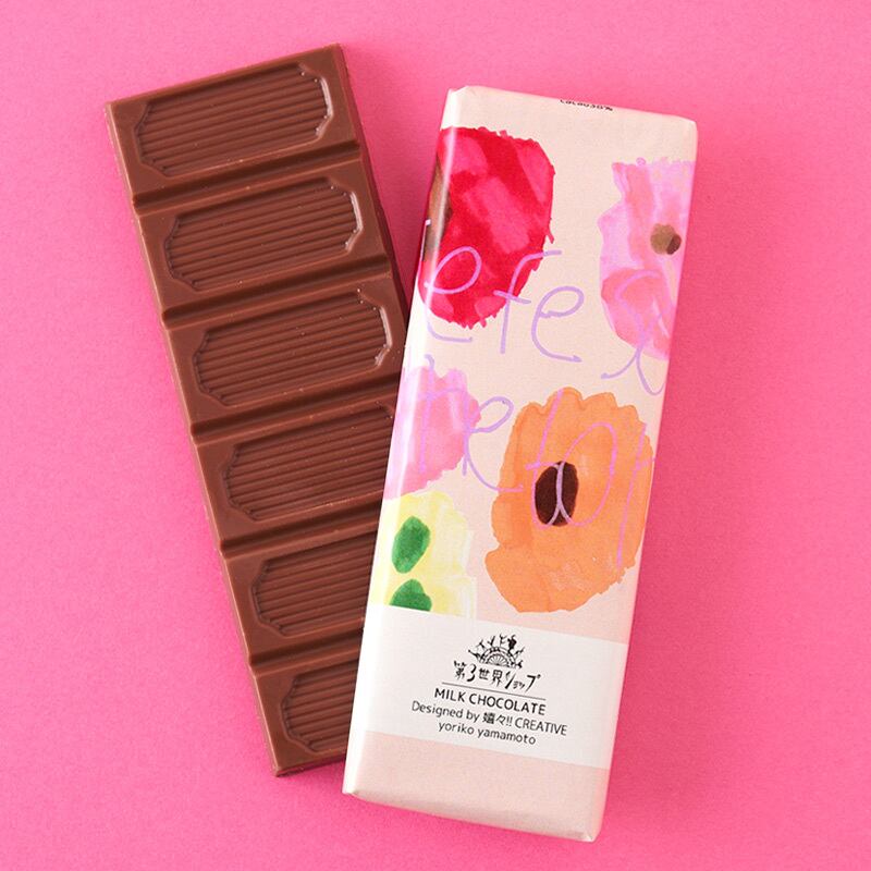 ミルクチョコレートは、山本 頼子さんの「je te souhaite…」のアートワークがデザインされたパッケージ。
