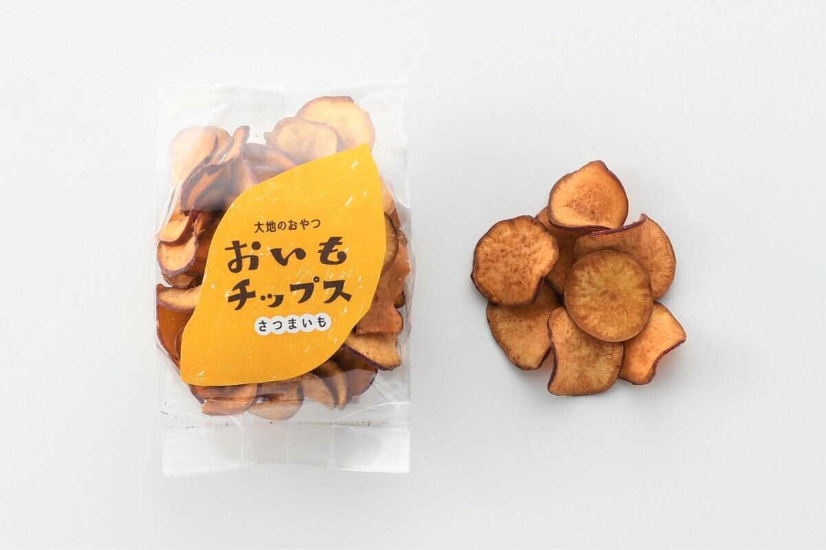 『おいもチップス』はさつま芋農家さんが丹精込めて育てたお芋を皮ごと薄く輪切りにし、米油でサクッと揚げた軽いチップスです。